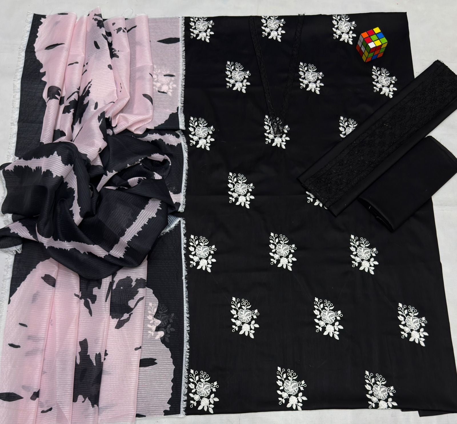 ✔️ Front Full Heavy Embroidered✔️ Sleeves Heavy Embroidered patch✔️ Soft Voil Printed Dupata✔️ Trouser Plain✔️ With Catalog & Bag